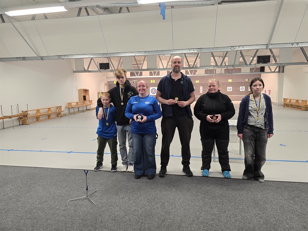 Det var 8 ystra skyttar som gjorde upp om en pallplats i årets omgång av KM tavla Inne som avgjordes på annandag påsk.